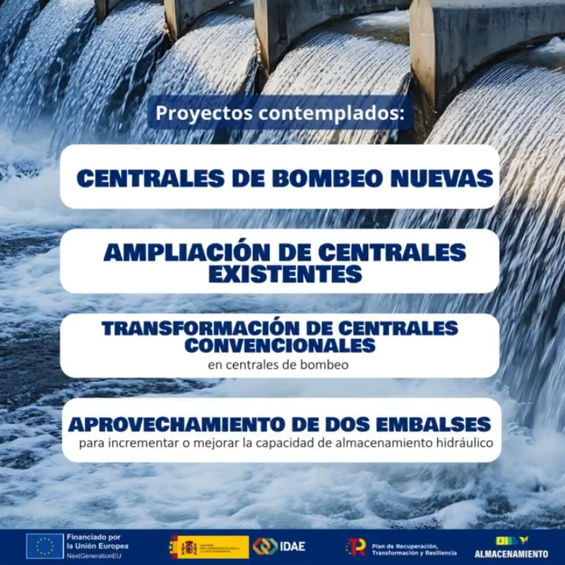 También se contempla la transformación de centrales convencionales en plantas de bombeo y el aprovechamiento de embalses para incrementar o mejorar la capacidad de almacenamiento hidráulico.