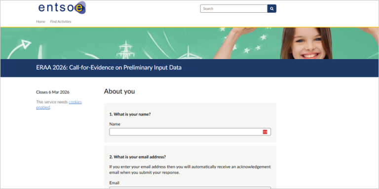 Hasta el 6 de marzo se puede participar en la convocatoria de evidencia (call for evidence) de la Evaluación Europea de Adecuación de Recursos (ERAA) 2026 sobre datos de entrada preliminares. A lo largo del proceso de la ERAA, la Red Europea de Operadores de Sistemas de Transporte de Electricidad (ENTSO-E) mantiene su compromiso de fomentar la colaboración y la interacción, y por ello ha lanzado esta consulta. El objetivo es recopilar información basada en la evidencia de las partes interesadas y expertos del sector sobre los escenarios de la ERAA 2026.