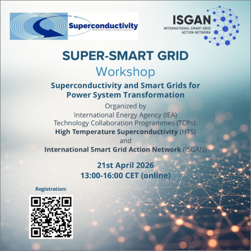 La Agencia Internacional de la Energía (IEA, por sus siglas en inglés), a través del programa sobre Superconductividad a Altas Temperaturas (HTS TCP) y la Red Internacional de Acción de Redes Inteligentes (ISGAN TCP), celebrará este martes 21 de abril un workshop online centrado en el papel de la superconductividad y las smart grids en la transformación de los sistemas eléctricos. La sesión se desarrollará entre las 13:00 y las 16:00 horas (CET) y abordará cómo ambas aproximaciones tecnológicas pueden contribuir de forma conjunta a la evolución de las redes eléctricas.