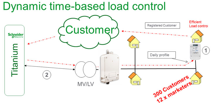 En base al conocimiento en el día N de los precios horarios de la energía eléctrica para el día N + 1, así como de los acuerdos con determinados clientes – cuya infraestructura eléctrica permite desconectar determinadas carga-, el Operador de la infraestructura de medida conecta en remoto determinadas cargas (caldera, calentador, etc.) en la ventana horaria de 5 horas, en la que los precios de la energía eléctrica son los más bajos del día.