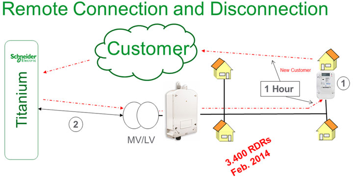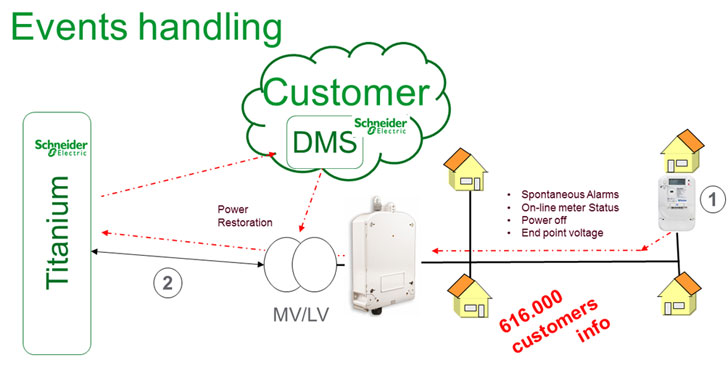 Los eventos, alarmas y estado de los contadores se registran en el sistema DMS en cuasi tiempo real. De esta forma el DMS puede prever mejor las posibles incidencias en la red y si éstas ocurren, puede analizar mejor el origen del fallo del suministro así como de las maniobras a realizar para reducir al máximo el tiempo de reposición del suministro eléctrico.