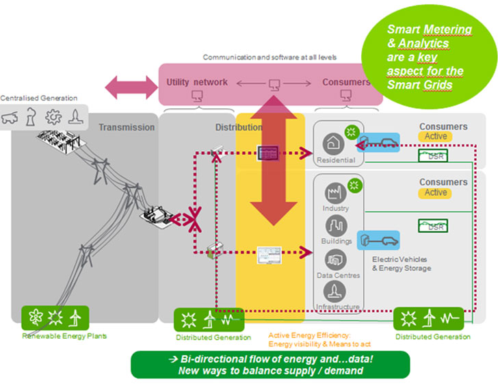 Las redes eléctricas están evolucionando de forma significativa. Entre los cambios fundamentales se pueden destacar el acercamiento de la generación al consumo (generación distribuida), la generación de forma más limpia (generación renovable), la instalación de infraestructura más inteligente en campo (analizadores de calidad de energía, contadores inteligentes, estaciones carga para coches eléctricos, etc.), el almacenamiento de energía -aunque aún a pequeña escala-, el incremento del rol cada vez más activo de los consumidores y de los prosumers, y la implantación de sistemas de información (AMI, MDM, Meter Data Analytics, etc.) que ayuden a recoger, almacenar, tratar y correlacionar los grandes volúmenes de información para lograr optimizar muchos de los procesos clave del negocio eléctrico.